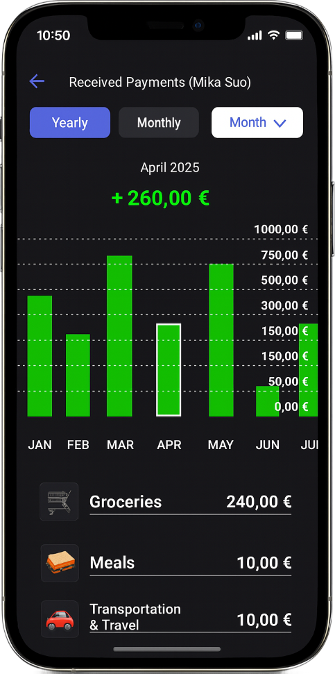 I designed a high-fidelity interactive prototype in Figma for a Finnish mobile payment service. I added features that let users track their payments per contact on yearly and monthly levels, categorize their transactions, and customize these categories to fit their needs.